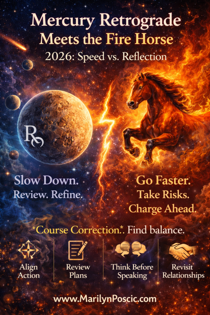 Mercury retrograde in 2026, a Year of the Fire Horse, creates a powerful tension between the Horse’s need for speed and Mercury’s demand for reflection, resulting in a “check-your-work” period rather than a total stop. It forces impulsive Fire Horse energy to slow down, review, and refine plans. This combination acts as a, ensuring that the swift, ambitious, and sometimes, “wild” energy of the 2026 Fire Horse is not wasted on poorly thought-out ventures, allowing for a more calculated approach to success.